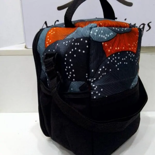 Insulated lunch carrier featuring vibrant African print designs with durable construction, perfect for work, school, and travel meals with cultural flair.