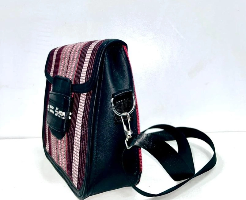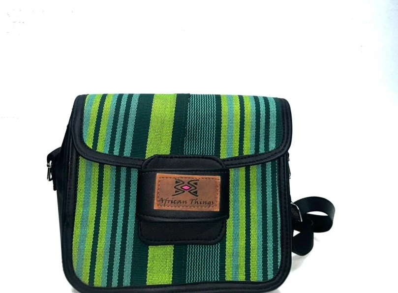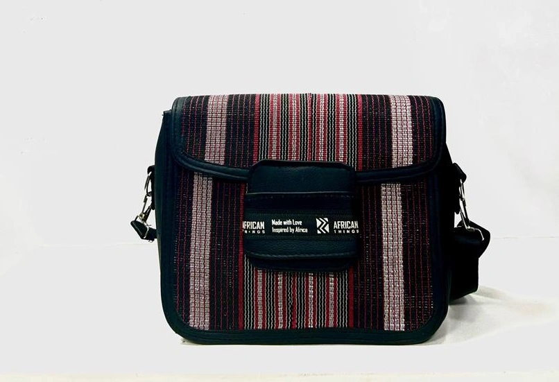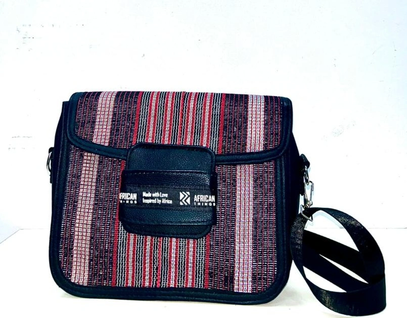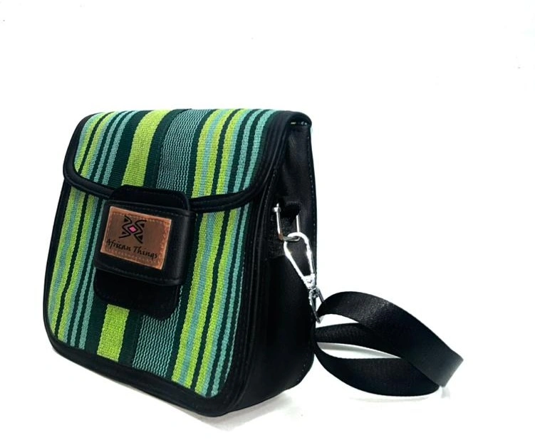 Elegant side bag crafted from authentic handwoven Aso Oke fabric with traditional embellishments, perfect for cultural celebrations and everyday sophisticated style.
